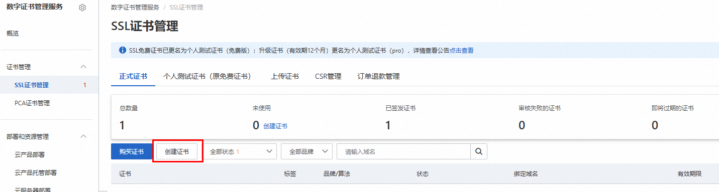 1)點擊左側(cè)欄的【SSL證書管理】,【購買證書】,如下圖: