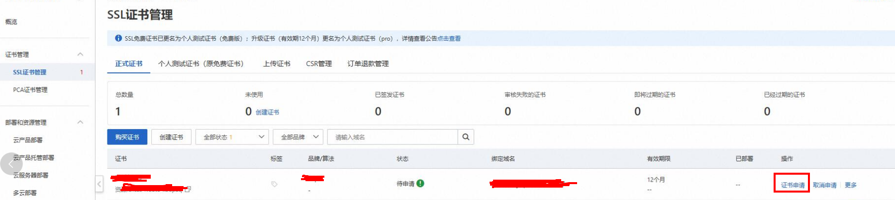 驗證成功以后。證書需要等待阿里云那邊審核,一般一小時內(nèi)審核完成。
