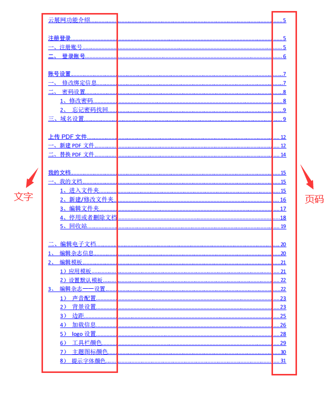 注意:多媒體編輯器里自定義添加的目錄頁(yè)暫時(shí)無(wú)法識(shí)別,必需是上傳pdf制作的電子書,并且pdf上有目錄頁(yè)才能識(shí)別,目錄必需是文字+頁(yè)碼的組合,如下圖: