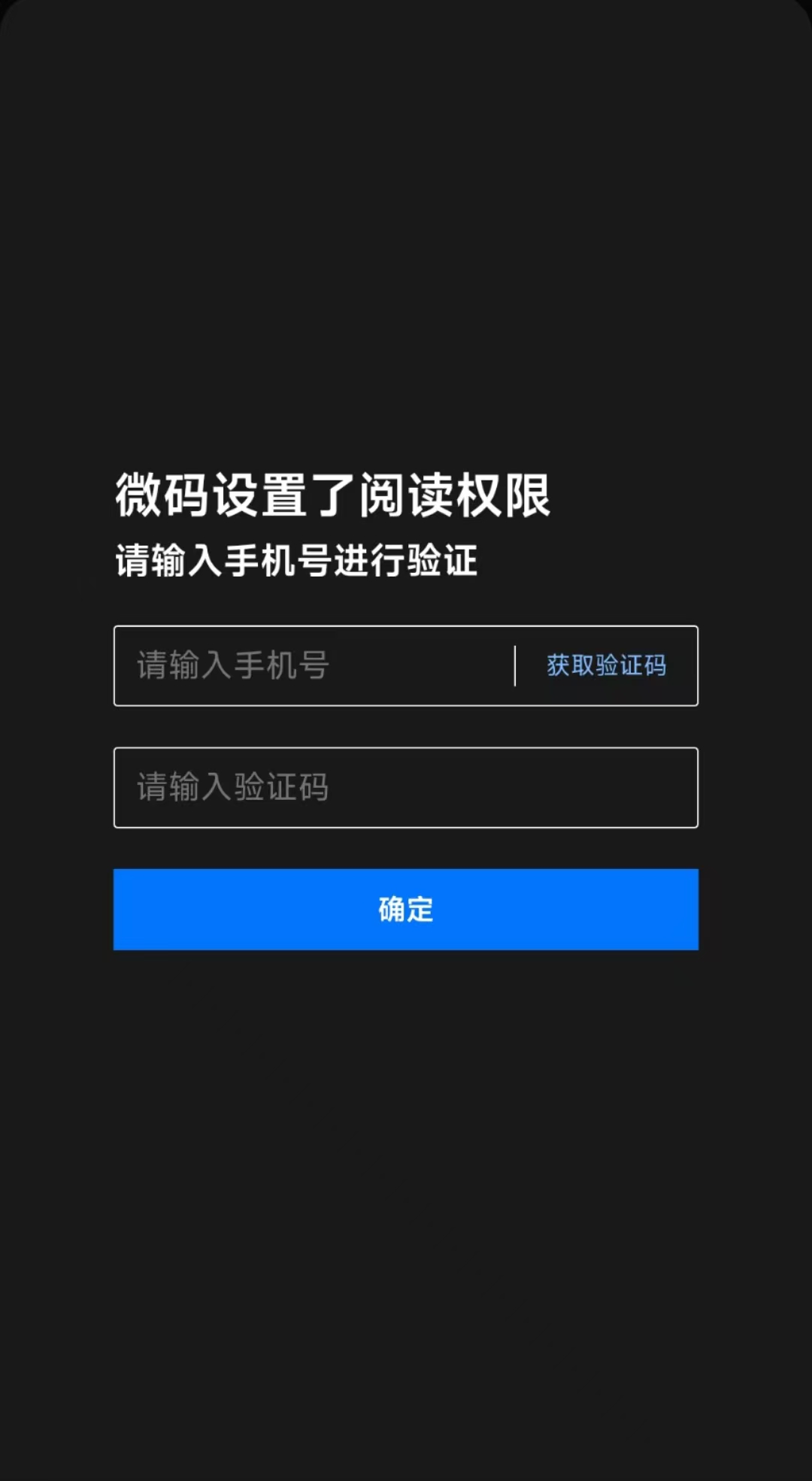 此功能可以后臺給微碼設(shè)置指定的手機(jī)號,然后讀者打開微碼后,需要通過指定的手機(jī)號收發(fā)驗證碼驗證后才可以觀看。