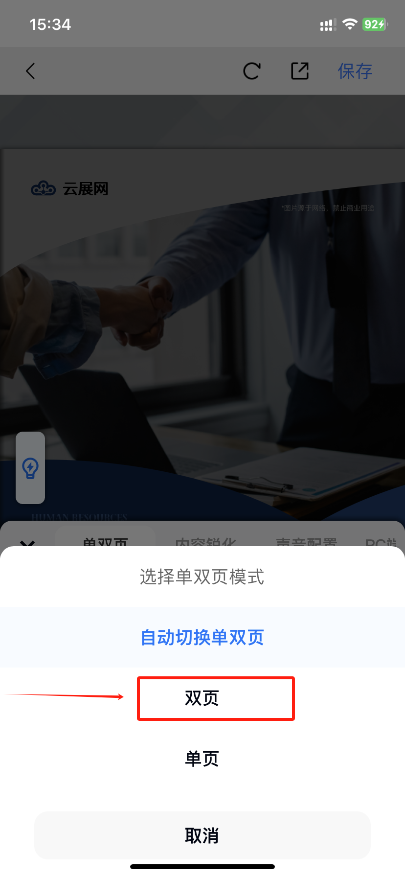 app上如何設(shè)置雙頁(yè)顯示? 一、功能介紹 如果您的書本有兩頁(yè)需要同一個(gè)畫面連著看,可將電子書設(shè)置為雙頁(yè)顯示模式。電腦端和手機(jī)端都會(huì)以雙頁(yè)形式展示。 二、操作步驟 1、打開編輯界面 在【作品】頁(yè)面,點(diǎn)擊【編輯】進(jìn)入 2、設(shè)置雙頁(yè)顯示 在【閱讀設(shè)置】,點(diǎn)擊【單雙頁(yè)】,隨后點(diǎn)擊【單雙頁(yè)模式】,選擇雙頁(yè)顯示
