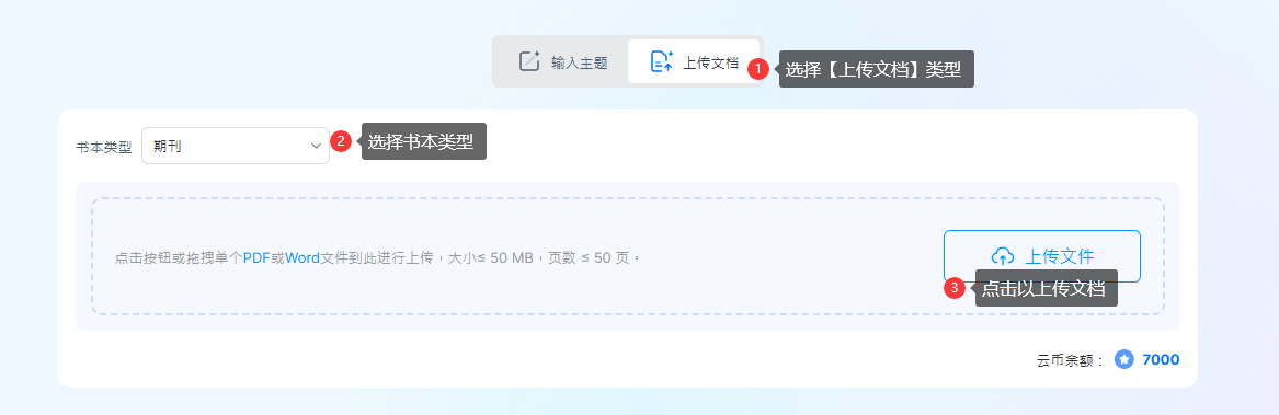 (1) 點(diǎn)擊【上傳文件】→ 選擇【書籍類型】→ 點(diǎn)擊【上傳文件】或?qū)⑽募先肷蟼骺?/p>