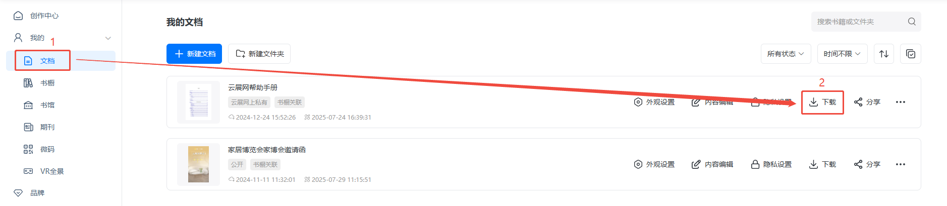 1、點(diǎn)擊【文檔】,選擇對(duì)應(yīng)電子書,然后點(diǎn)擊【下載】。
