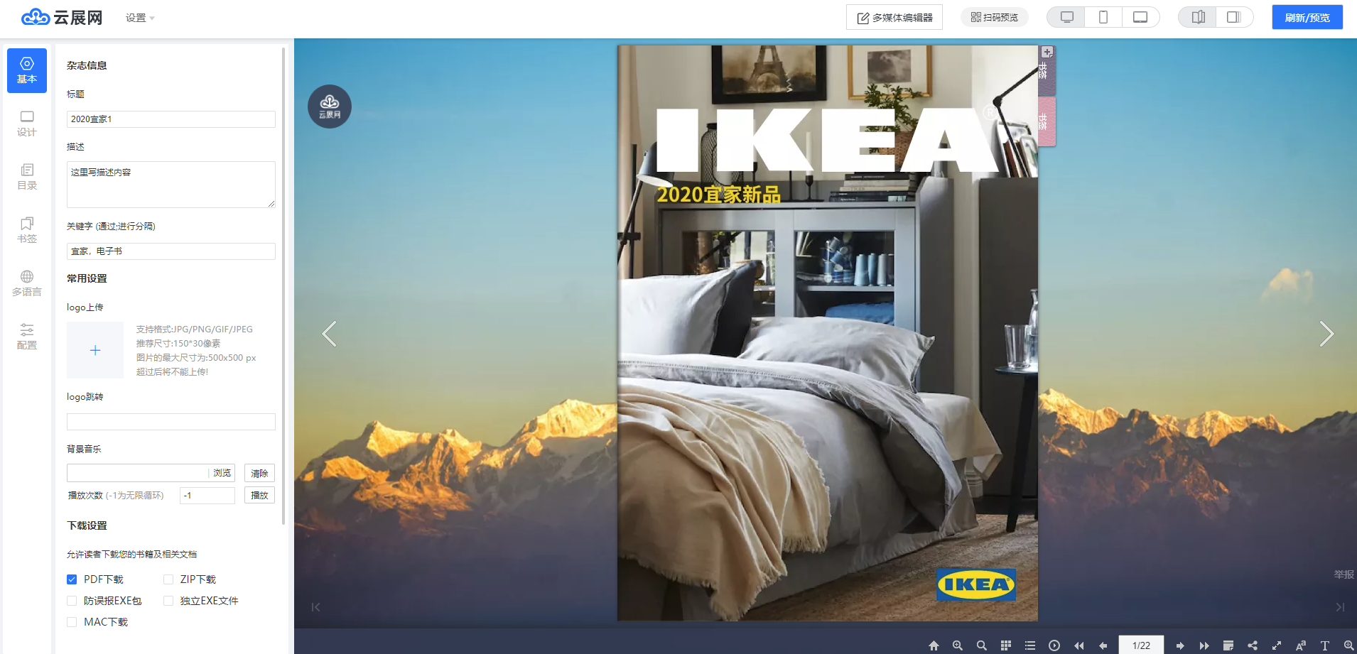 管理、修改電子雜志設(shè)置 創(chuàng)建雜志上傳審核完畢之后,需要更改雜志設(shè)置,可以在登陸賬號(hào)后,鼠標(biāo)放在云展網(wǎng)右上角的頭像處,點(diǎn)擊“我的文檔”,就能見(jiàn)到自己上傳的書(shū)本了。 下面請(qǐng)看下紅框中的編輯按鈕,就是用于修改書(shū)本配置的: 編輯雜志:上傳好的雜志可以通過(guò)編輯雜志更改各項(xiàng)功能,同步預(yù)覽各種設(shè)置,更改雜志下載格式以及切割功能。具體功能請(qǐng)看編輯雜志功能介紹。