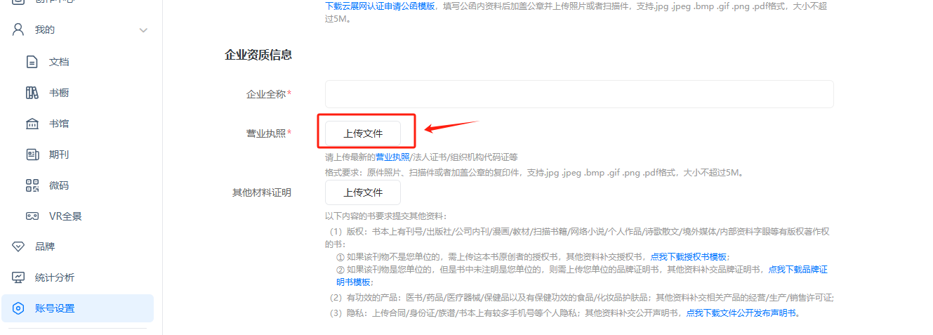 2) 上傳營業(yè)執(zhí)照/組織機構(gòu)代碼證/法人證書等