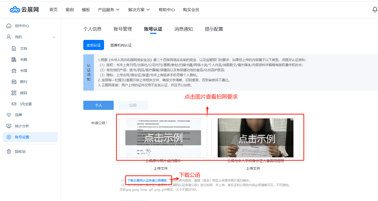 電腦登錄云展網(wǎng)網(wǎng)站,登錄您的賬號,點擊【賬號設(shè)置】,點擊【賬號認證】打開賬號認證界面