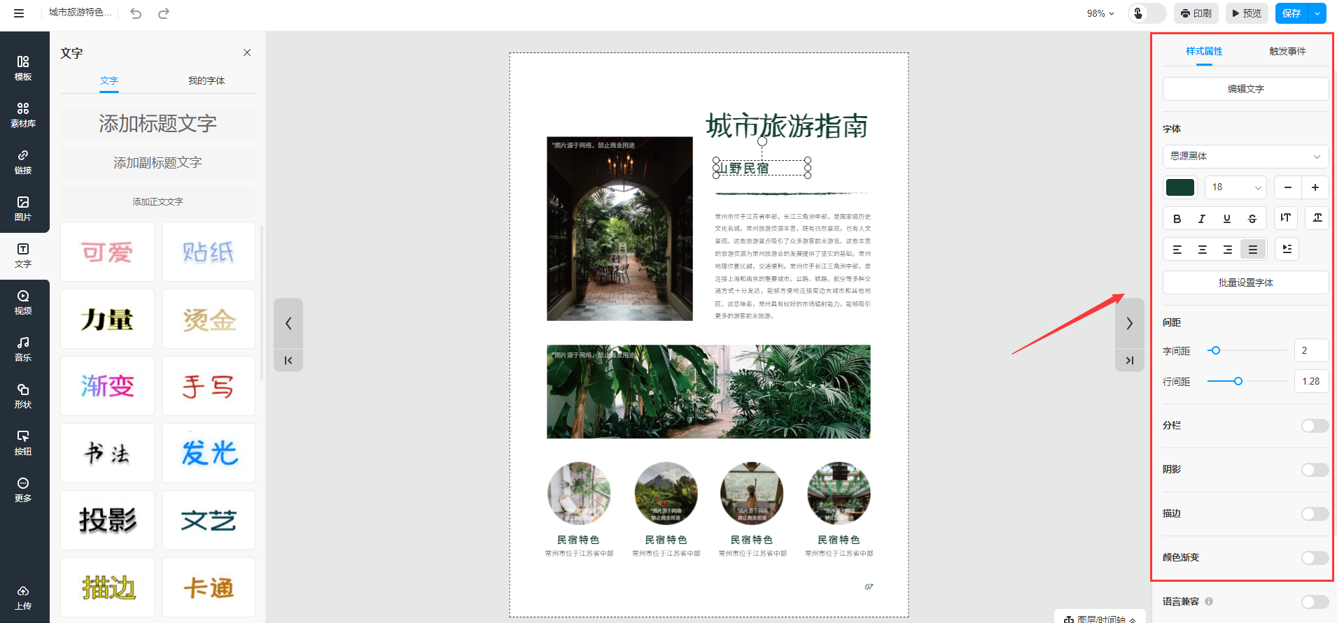 添加文字功能可以在空白文檔中快速添加文本區(qū)域、標(biāo)題、副標(biāo)題及使用酷炫文體。也可以在生成電子書后,追加文字而不用重新上傳文檔。添加文字可以提供內(nèi)容解釋和詳細信息,引導(dǎo)讀者更深入理解。