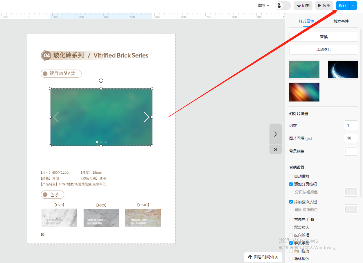 當(dāng)有很多圖片需要展示到電子書(shū)上時(shí),可以使用云展網(wǎng)上的幻燈片功能實(shí)現(xiàn),將圖片組合起來(lái)以輪播的形式展示,動(dòng)態(tài)的幻燈片界面可以使我們的電子書(shū)更加的出色。