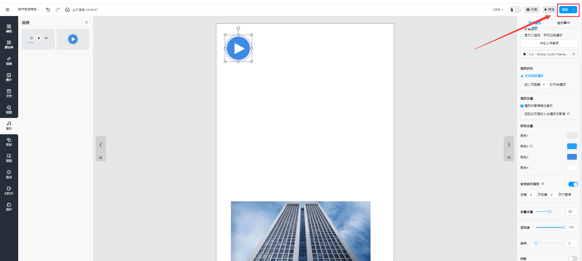 音頻跨頁(yè)播放設(shè)置好以后,點(diǎn)擊右上角【保存】即可