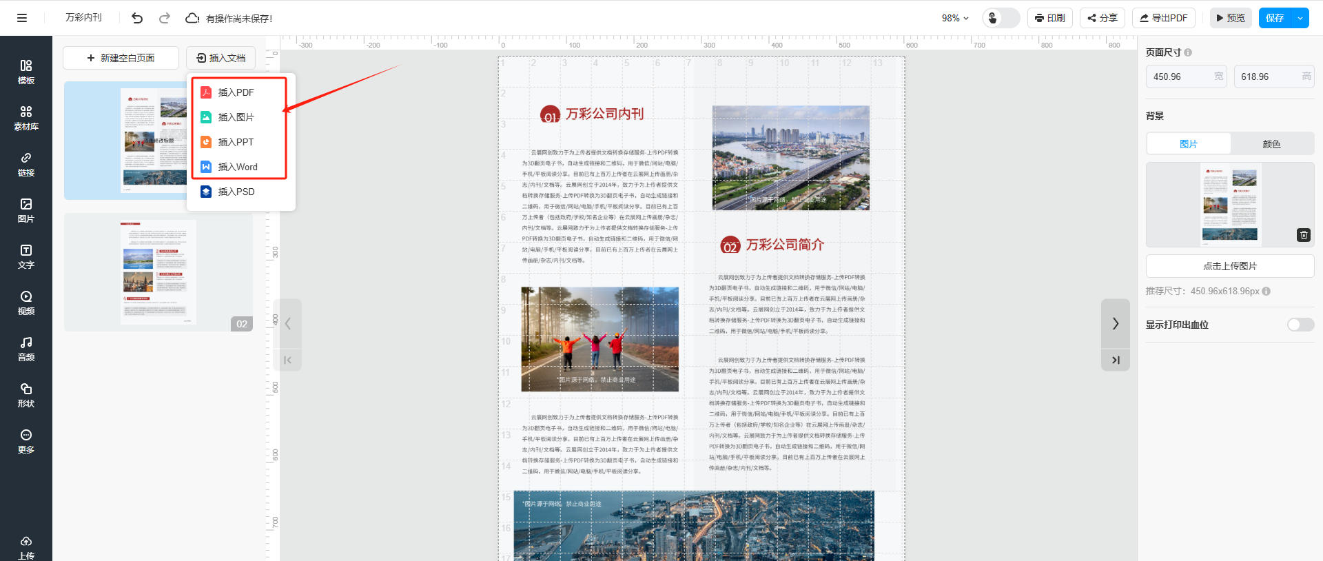 云展網(wǎng)支持給做好的書本增加頁(yè)面。例如您制作的產(chǎn)品手冊(cè)需要增加產(chǎn)品頁(yè),給企業(yè)內(nèi)刊新增頁(yè)面內(nèi)容都可以使用這個(gè)功能。