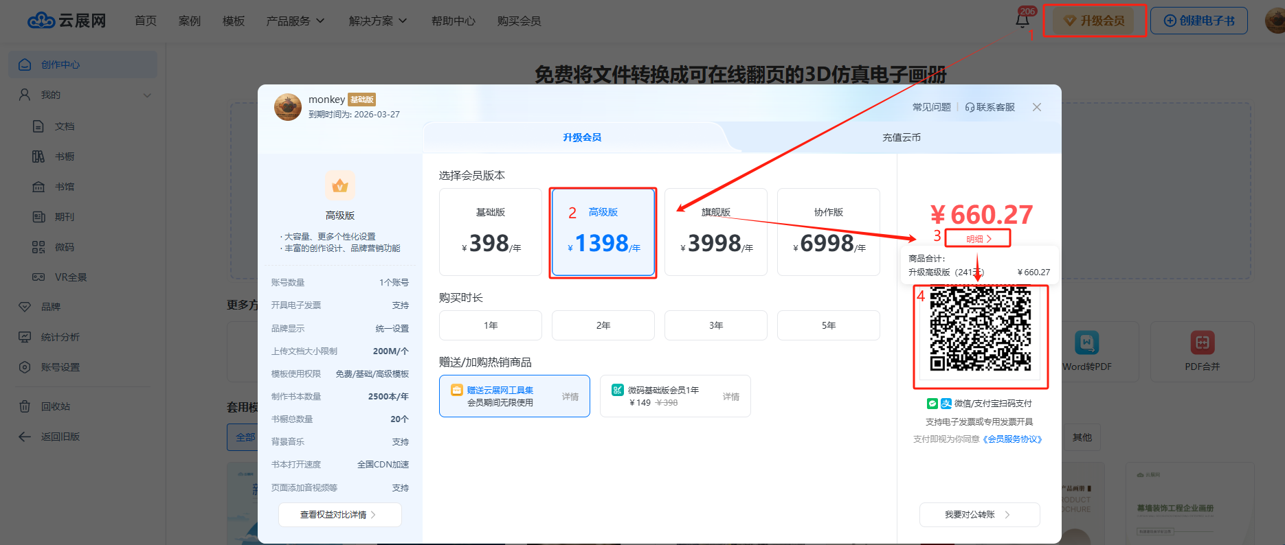 云展網(wǎng)升級會員補差價公式