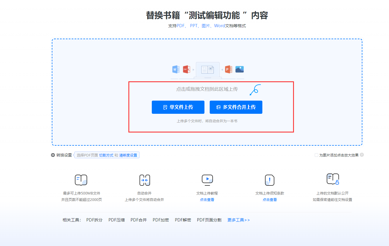 如果之前上傳的是單文件,點(diǎn)擊【單文件上傳】或者【多文件合并上傳】直接上傳修改好的新文件即可。