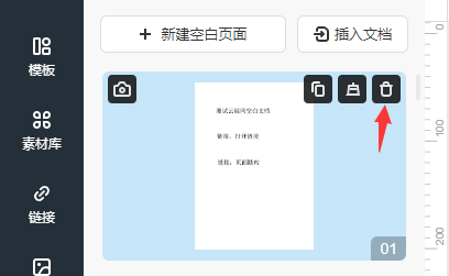 成功插入新文件之后,將鼠標(biāo)移動(dòng)到左邊舊頁(yè)面的縮略圖上點(diǎn)擊垃圾桶圖標(biāo),刪除舊頁(yè)面。